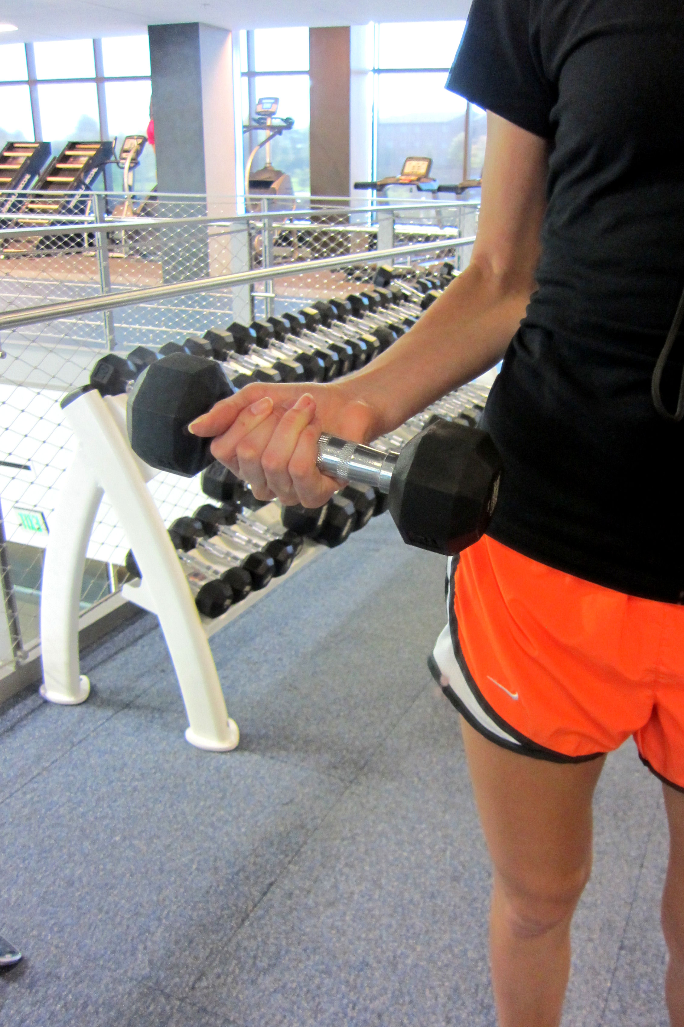 The 30 minute walk had me nice and warmed up so I hit the weight racks and proceeded to pick out my wimpy dumbbells.